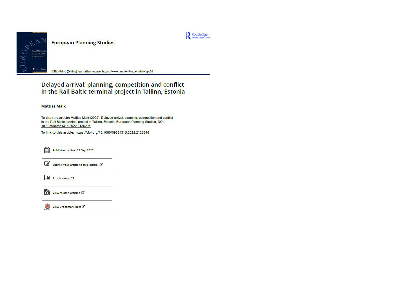 Rail Baltic Tallinn terminal - academic article